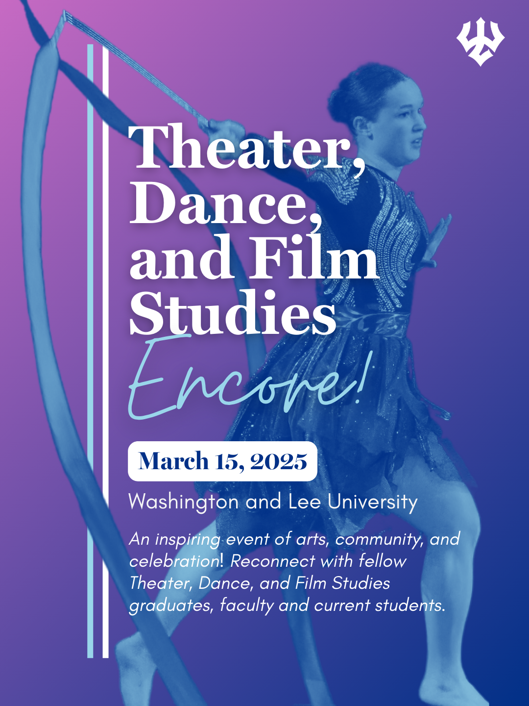 W&L Theater, Dance, and Film Studies: Encore! An inspiring event of arts, community, and celebration! Reconnect with fellow Theater, Dance, and Film Studies graduates, faculty and current students. Join us for a day of reconnecting with alumni, engaging with current students, and honoring the legacy of our Theater, Dance, and Film Studies programs.